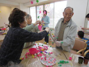 入居者様同士で交流を深めながら、簡単なゲーム・脳トレ・壁画などの制作などを行っています。