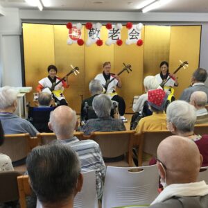 長寿祝いの入居者様の表彰を行い、ボランティアの方による津軽三味線の演奏をお楽しみ頂きました。